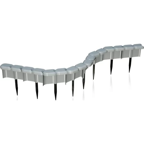 De palissade bestaat uit losse delen die vlot aan elkaar passen, instaleer de rand waar jij het nodig hebt en in willekeurige vorm door ze in de grond te duwen, dankzij kunststof pinnen.
