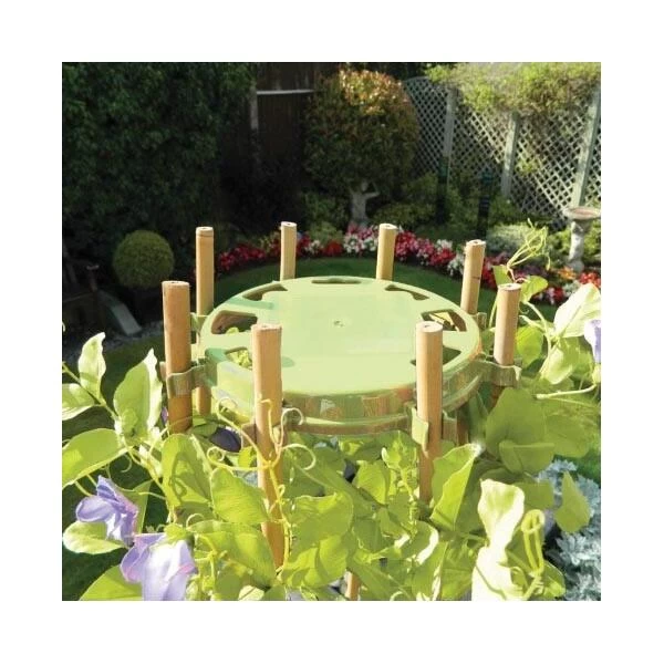 Gebruik deze ring om bamboestokken snel en makkelijk bij elkaar te binden tot een stevige piramide om planten langs te laten groeien. Geschikt voor 8 bamboestokken.