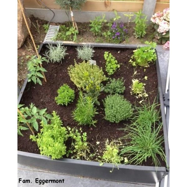 Het ontwerp is bijzonder geschikt voor diep wortelende groenten en knollen, zoals aardappelen, kolen, ajuinen, wortelen,… Dit verhoogde tuinbed is compact genoeg voor gebruik op terrassen of zelfs balkons.