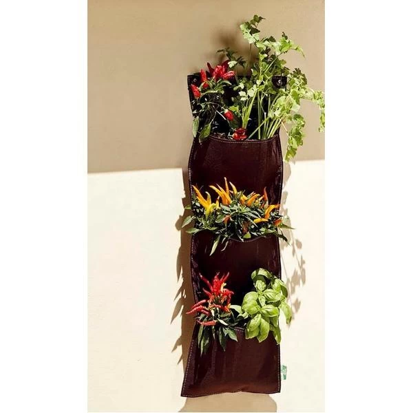 Je kan hem gebruiken als mini moestuin of als mini siertuin. De zak bestaat uit verschillende plantvakken die gemaakt zijn uit een stevige stof in een donkerbruine kleur. De binnenkant van elke zak is voorzien van een sterke folie in polyethyleen voor een lange levensduur van de zak.