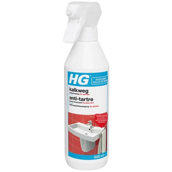 HG kalkweg schuimspray 3x sterker verwijdert hardnekkige kalkaanslag gemakkelijk, grondig en snel en laat een stralende glans achter. Het is geschikt om dergelijke hardnekkige kalk, wat een doffe waas geeft, te verwijderen van tegels, douchecabines, kunststof baden, wastafels, kranen, douchekoppen en aanrechtbladen.