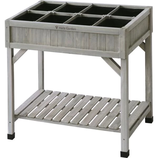 In deze mooi ogende verhoogde kweektafel geschikt voor 60 liter grond, teel je met gemak tuinkruiden zoals munt, basilicum, tijm. Voorzien van 8 afzonderlijke vakjes.